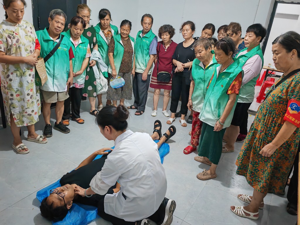 活动邀请了宋家桥街道社区卫生站医务人员现场演示,提前编制了急救演练方案、策划演练细节,对参演人员进行培训,让志愿者了解基本救护知识。