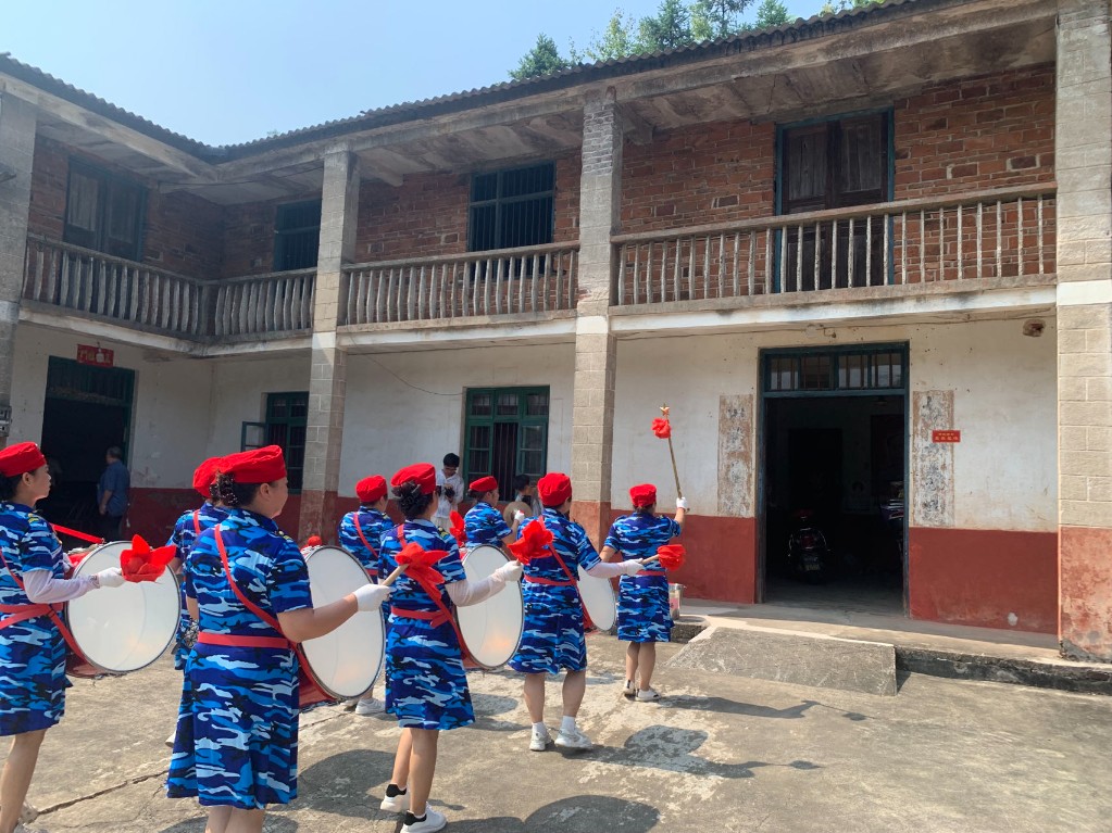 伴随着欢快的锣鼓声,镇村两级干部带着村上的志愿军鼓队敲锣打鼓将“最美屋场”荣誉奖牌及奖品送到优秀代表家中,并进行现场观摩。