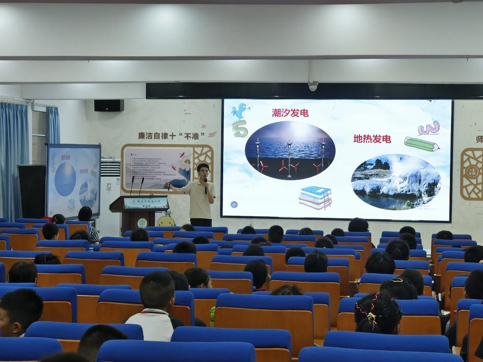 据悉,本次活动主讲老师是来自国网株洲供电公司主值调度员,助理工程师陈希之。他于22年硕士毕业于华北电力大学,参加工作以来参与发表EI检索期刊论文两篇、专利一项、QC成果三项、管理创新一项。并获国家电网有限公司2023年第四期新员工集中培训“优秀学员”、“优秀学员干部”称号、省电力公司辩论赛团体第一名、省电力公司调度副值考试第一名等荣誉。此次电力科普课堂让学生了解了电的发展历程,还从课堂中学习到生活中如何安全用电。陈希之精彩的演讲让学生们对生活中的许多电学现象充满兴趣,更激发了学生们对于科学探索的热情。相信在今后的学习和生活中,学生们会带着创新探索的精神努力学习将祖国建设为科技强国。