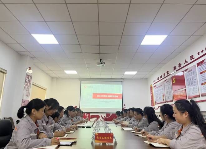 9月26日下午,中材株洲第二党支部在三楼党员活动室开展九月份主题党日活动。活动由支部书记赵娟主持,企业党总支副书记、副总经理黎晓,党总支委员、总经理助理王继升,支部全体党员、入党积极分子共20人参加。