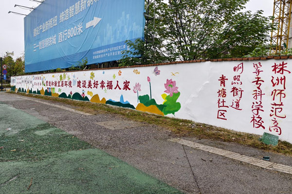 三天时间,除了株洲师范高等专科学校的学生外,还有市十八中、星光小学、明照小学四家中小学的师生以及社区志愿者100人余参与墙绘绘制,大家顶着冬日的寒冷,完成这次墙绘。为了做好这次墙绘,青塘社区网格员黄小妹绞尽脑汁,联系了近20所学校,最终与这四家学校达成一致,克服了各种困难完成了这次墙绘,社区充分做好了后勤保障工作。