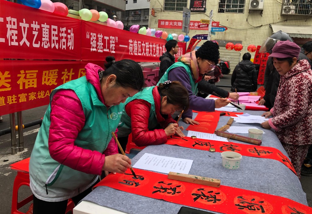 1月7日,是中国传统的腊八节,“过了腊八就是年”,由荷塘区文联、宋家桥街道驻富家垅A区援建工作队、富家垅AC区党支部共同筹办的“春联文化传万家,新春送福暖社区”活动在荷塘区富家垅A区热烈举行,为渐浓的年味儿更添了喜庆。