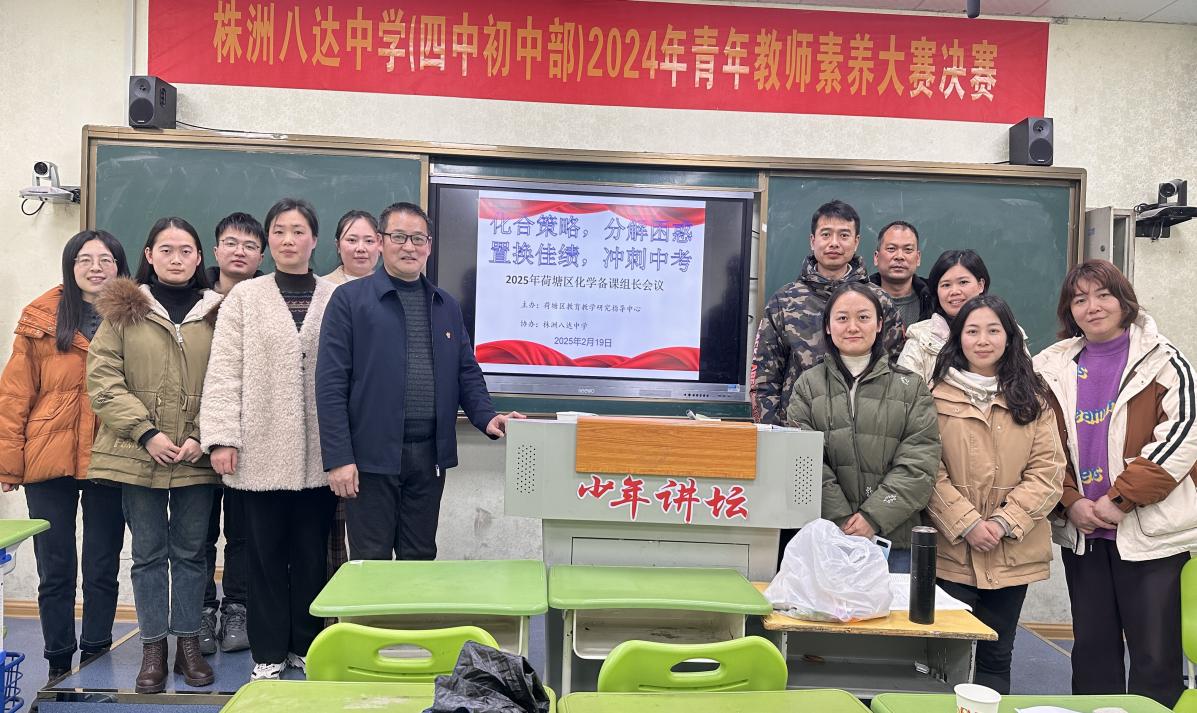 为进一步提高我区化学教学质量,精准把握2025年中考化学备考方向,提升教师的教学水平和备考能力,2月20日,荷塘区各学校九年级化学备课组长相聚在株洲八达中学校园。此次活动不仅是对过往教学成果的回顾与总结,更是为新学期的教学工作瞄定方向,擘画蓝图。