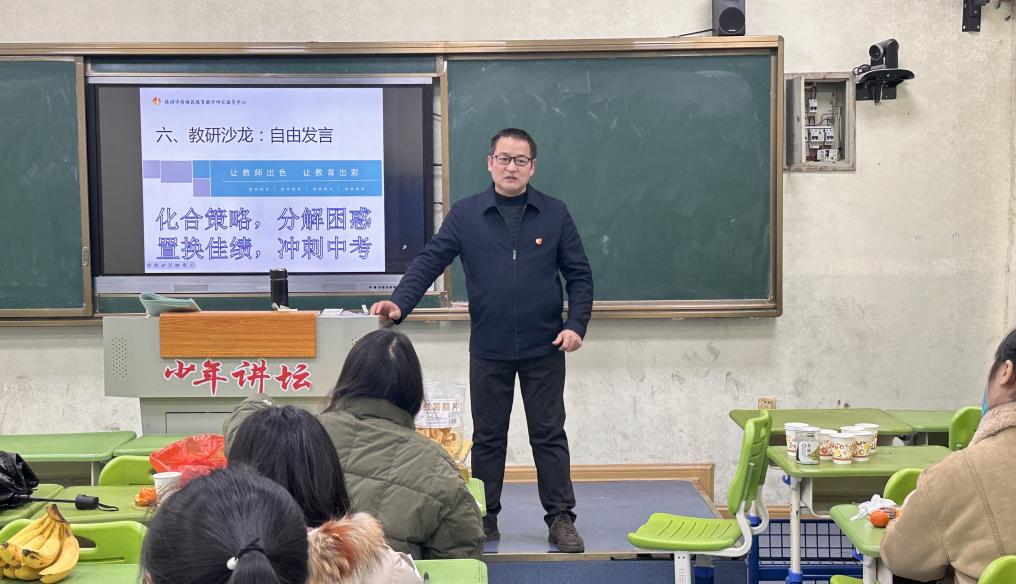 本次会议由荷塘区化学教研员周增辉主持,会议主题为"化合策略,分解困惑,置换佳绩,冲刺中考"。周老师对上学期的教学工作进行了全面细致的总结,并转达了区教研指导中心2025年工作要点,对本学期教学教研工作做了具体安排。