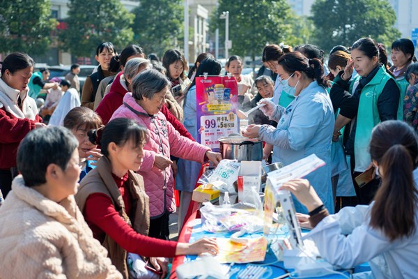 医疗专区呈现“健康服务嘉年华”盛况,200余位居民有序接受血压血糖检测、骨密度筛查及口腔检查。中医理疗区艾香袅袅,专业按摩师为不少颈肩劳损居民实施推拿理疗,获得在场长者连连称赞。“这当归蛋暖胃又暖心!”居民王阿姨捧着刚熬制的养生热饮,向志愿者竖起大拇指。