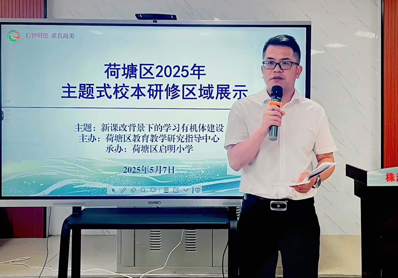 5月7日,荷塘区2025年主题式校本研修区域展示活动在启明小学举行。此次活动是落实湘教发〔2024〕44 号文件《湖南省大力推进中小学校本研修高质量发展实施方案》要求,以及践行株洲市教育高质量发展"十大工程"中课程改革工程的重要举措。荷塘区小学各学科教研员、各学校教学副校长、教研主任、骨干教师代表参加活动。