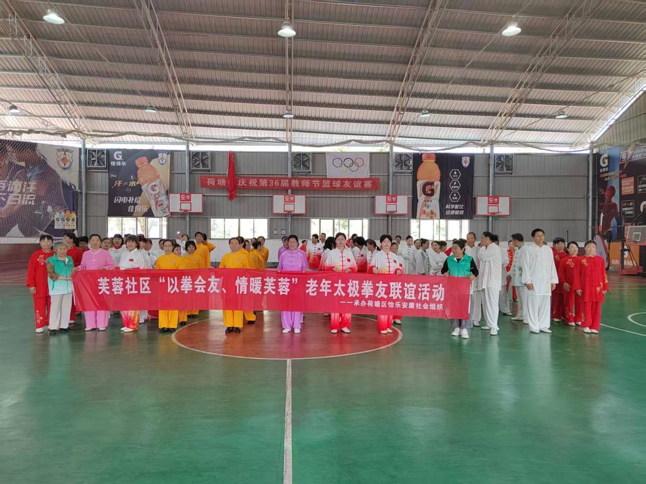 5月26日上午,荷塘区宋家桥街道第二届"以拳会友・情暖芙蓉"太极拳友联谊活动在芙蓉社区铁四院体育馆圆满举行。恰逢端午佳节临近,近200名太极爱好者以18支表演方阵轮番献艺,用行云流水的招式演绎传统文化之美,为即将到来的端午节增添别样风采。