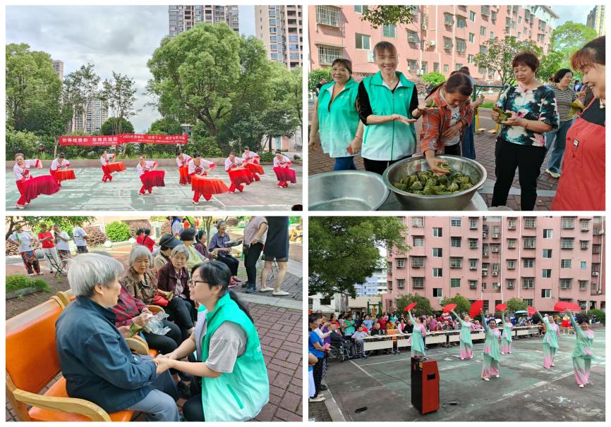 此外,在404小区,一场以"粽香传雅韵,歌舞庆端阳"为主题的"文艺汇演"活动也精彩上演。404小区居民在党建引领下,主动链接铁路老友艺术团参演,同时也积极参与志愿活动与表演,帮忙筹备和制作端午节粽子,为端午节顺利开展,献上自己的一份力量。