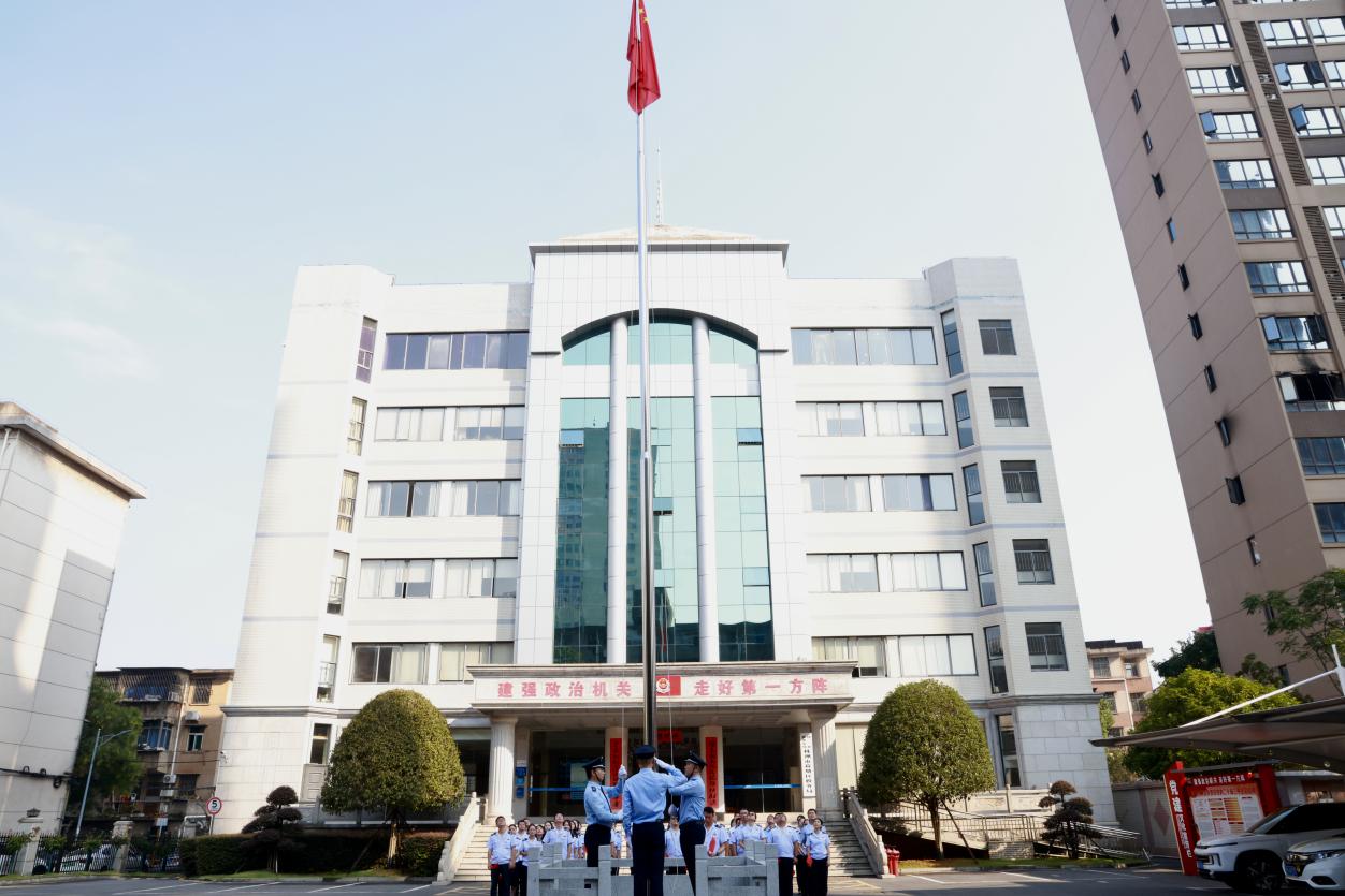 上午9时整,升旗仪式正式开始。三名护旗手迈着铿锵有力、整齐划一的步伐,护卫着鲜艳的五星红旗走向升旗台。伴随着雄壮激昂的《义勇军进行曲》,擎旗手振臂一挥,五星红旗迎风展开,冉冉升起。在场全体干部庄严肃立,面向国旗行注目礼,齐声高唱国歌,表达对伟大祖国的无限热爱和崇高敬意,共同祝愿祖国繁荣昌盛。