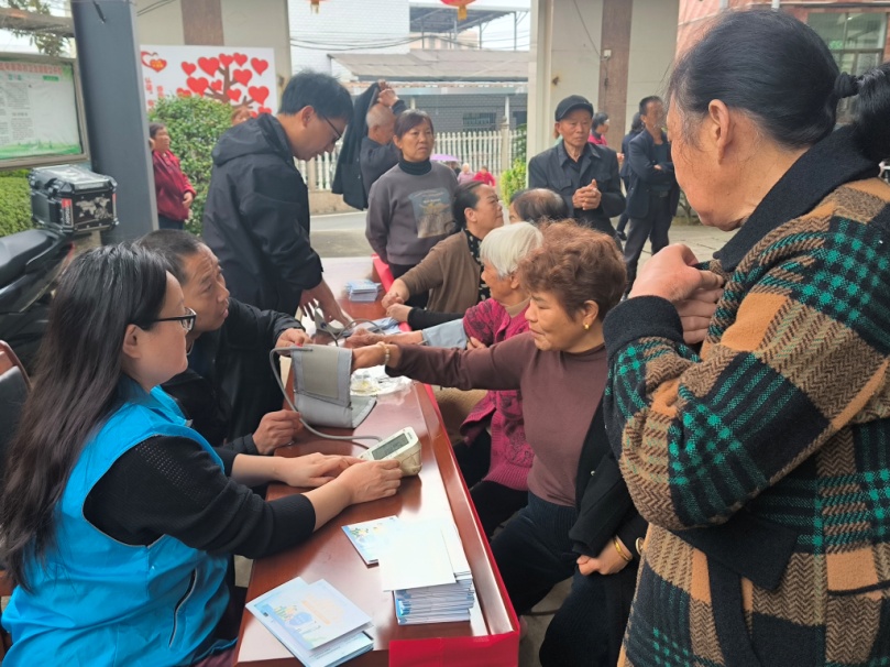 活动现场,志愿者穿梭忙碌,为陆续到场的老人递上热水、引导入座,温馨细节处处可见。早上9点,宋家桥街道卫生服务中心的医护人员便在现场有序展开了义诊服务,为老人们免费测量血压、血糖,耐心解答高血压、关节炎等常见病的防治问题,并结合秋冬季节特点,普及防寒保暖与合理膳食知识,以专业守护为老人健康筑牢屏障。