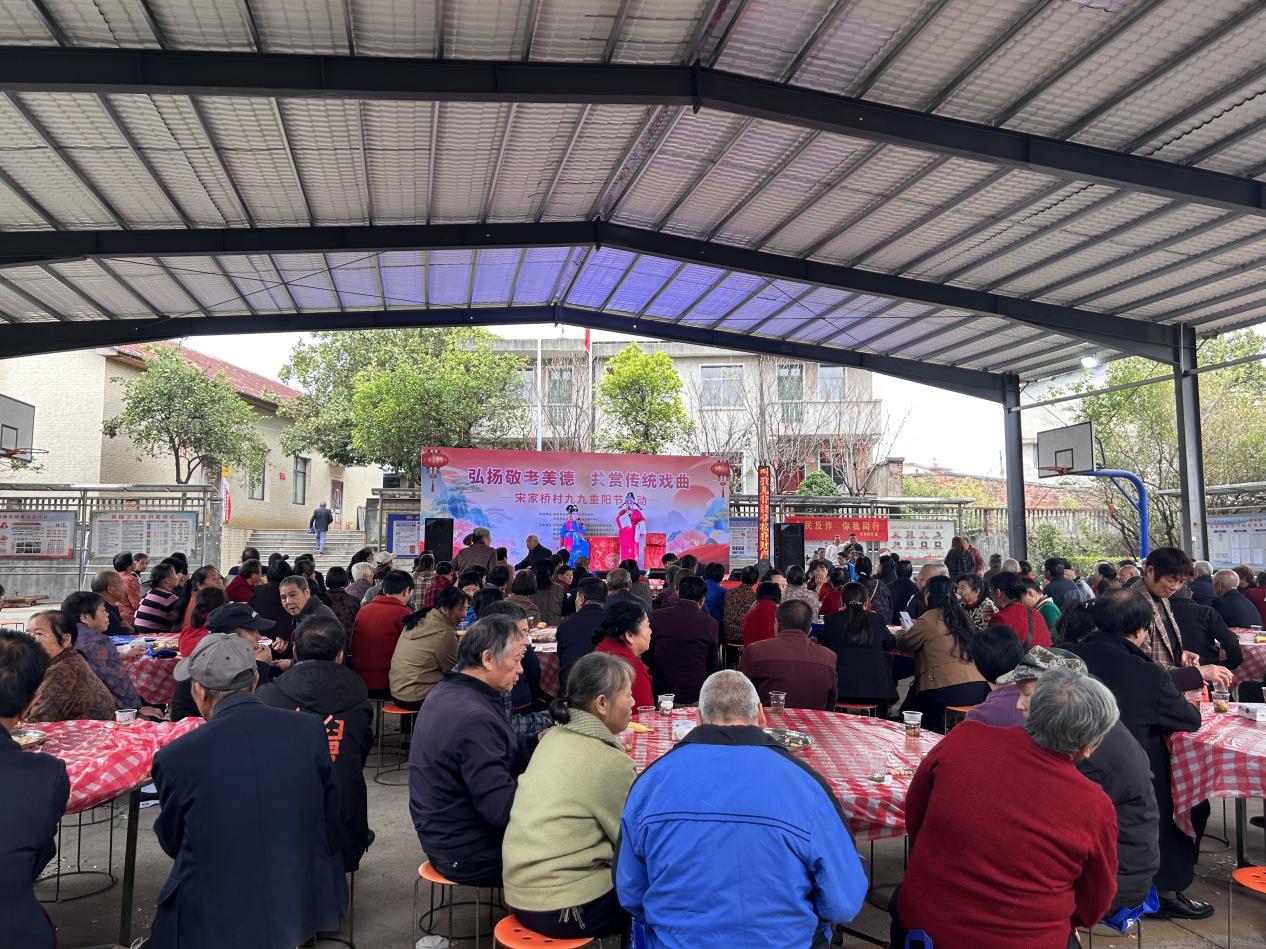 岁岁重阳暖人心,尊老敬老传美德。10月29日上午,荷塘区宋家桥街道宋家桥村新时代文明实践站内暖流涌动,"弘扬敬老美德·共赏传统戏曲"重阳节主题活动温馨启幕。这场活动让村里60岁以上的老人欢聚一堂,在戏曲、义诊、美食与惠民宣传的交织中,共度一个既温情洋溢又干货满满的重阳佳节。