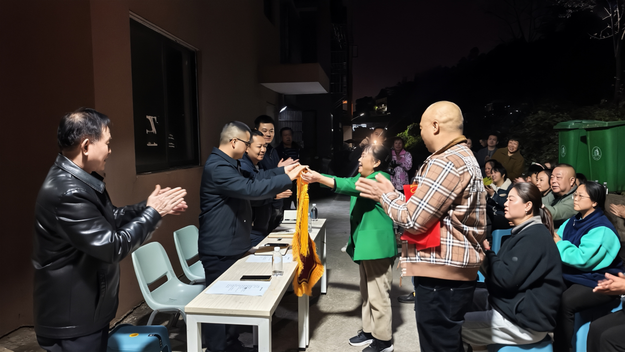 "小区排污纳入全区雨污分流改造,已完工;经街道努力,完成电梯以及供电设施的维护和建设;在区委、区政府的支持下,小区用上了便宜的居民生活用电;道路硬化了,路灯也亮起来了。"街道干部李忠炳逐条汇报着一年来的"成绩单"。每念出一项,台下居民们便频频点头,眼神里流露出的是对前期工作的认可与感激。这无声的赞许,在居民代表何阿姨双手捧出一面鲜红锦旗时,达到了高潮。锦旗上"情系百姓,真心办事"八个大字,它无言,却诉说着50余户居民心中最真诚的肯定。"街道、社区为我们默默办了很多事,让我们小区有了显著变化。""上次我们坐在这,满肚子都是抱怨,没想到街道真的把百姓的事放在心上,一件件都办成了!"居民们你一言我一语,诉说着一年来的变化,在此刻,一年前的"问题清单"已然变成居民们口中实实在在的"变化清单"。