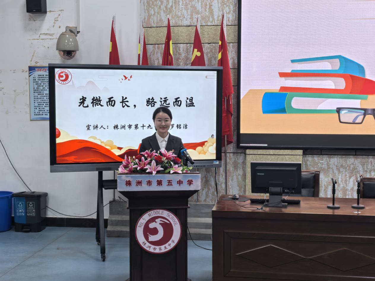 活动现场,株洲市第十九中学的罗铭洁以《光微而长,路远而温》为题,用细腻的讲述分享了自己在教育路上以微光点亮学生成长的故事,展现了教育者的坚守与温暖;株洲市第五中学的邱燕萍则以《以爱为舟,以责为帆》为主题,通过生动事例讲述了夏帆老师在教育岗位上的实践故事,深刻诠释了"爱"与"责任"在教育中的核心意义,让在场听众深刻感受到荷塘教师的教育情怀与责任担当。
