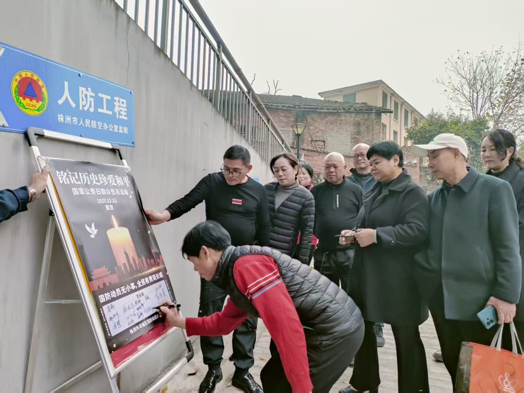 2025年12月13日是南京大屠杀死难者国家公祭日,为铭记历史、缅怀先烈、珍爱和平,株洲市荷塘区国防动员办公室(简称"荷塘区国动办")以人防工程为载体,在辖区内多个企事业单位、小区、学校及人防工程点位开展"铭记历史,珍爱和平"国家公祭日群众签名活动,凝聚起全民国防动员的精神力量。