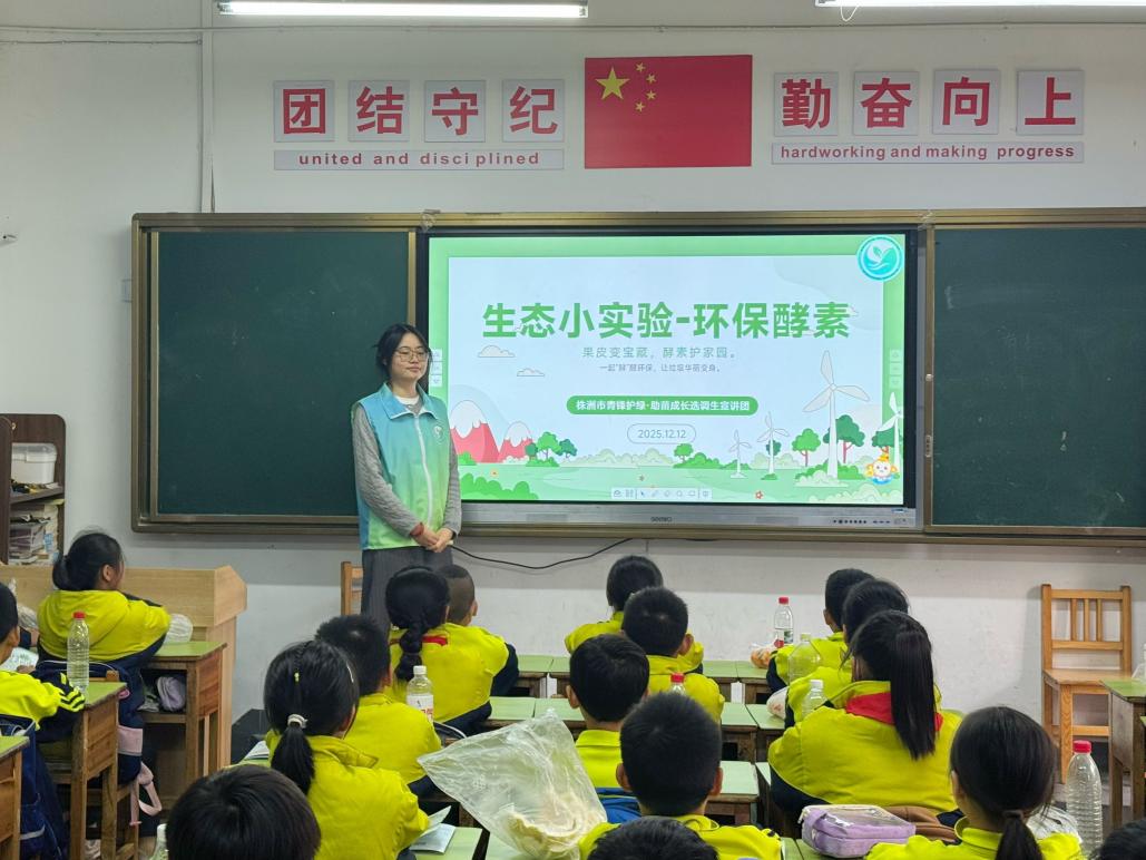 为深入践行习近平生态文明思想,积极响应"守护好一江碧水"的殷殷嘱托,接续2024年"大美湖湘、青赴绿意"生态文明宣讲活动的初心与影响力,2025年12月12日,一场别开生面的生态文明"启蒙课"在株洲市荷塘区茨菇塘街道辖区内的六〇一中英文小学364班成功开讲。本次活动是街道与学校秉承一贯优良传统,以"社区合伙人"模式协同共育的又一实践。