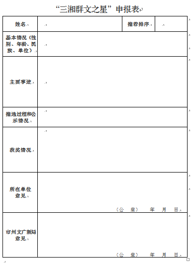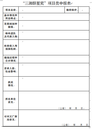 ①申报项目类“三湘群星奖”、“三湘群文之星”需报送1份申报报告,注明参选对象的名称、数量、资格审查证明等,加盖申报主管部门公章;