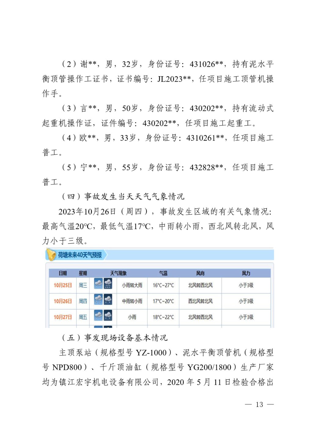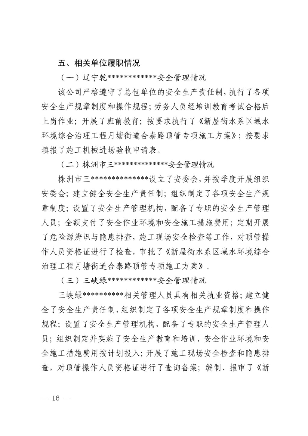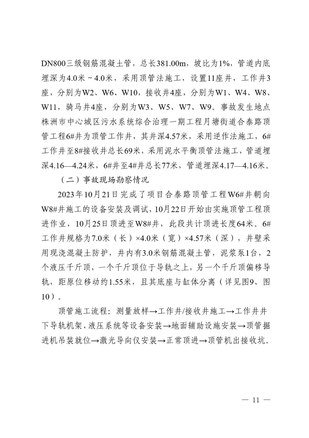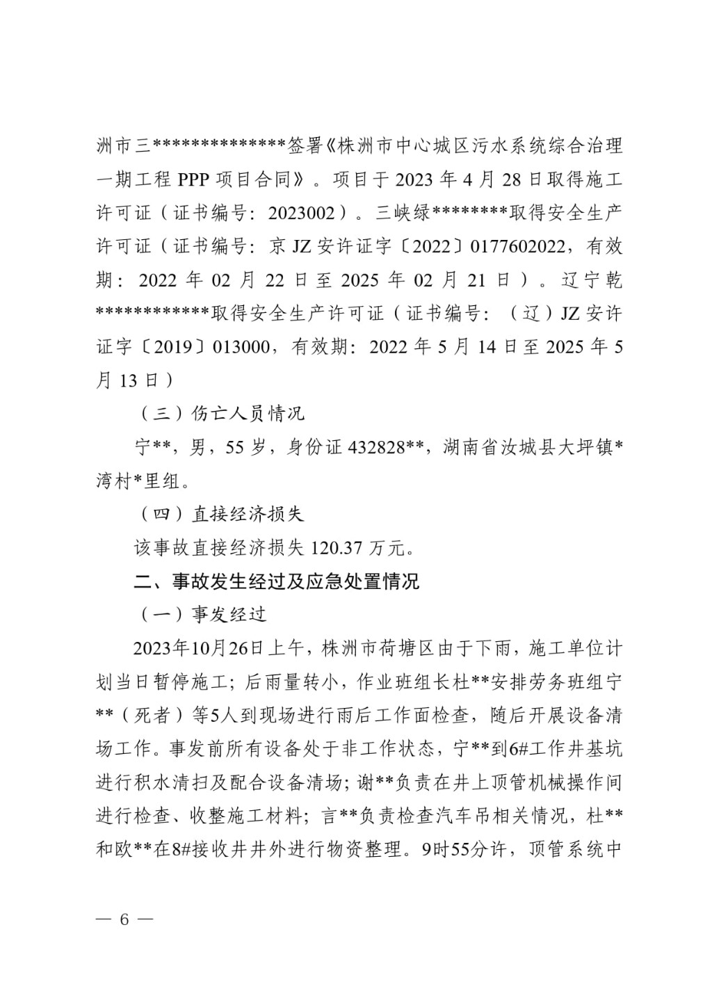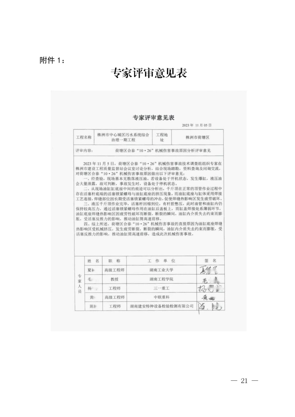 荷塘月塘街道株洲市中心城区污水系统综合治理一期工程“10·26”一般机械伤害事故的批复及调查报告
