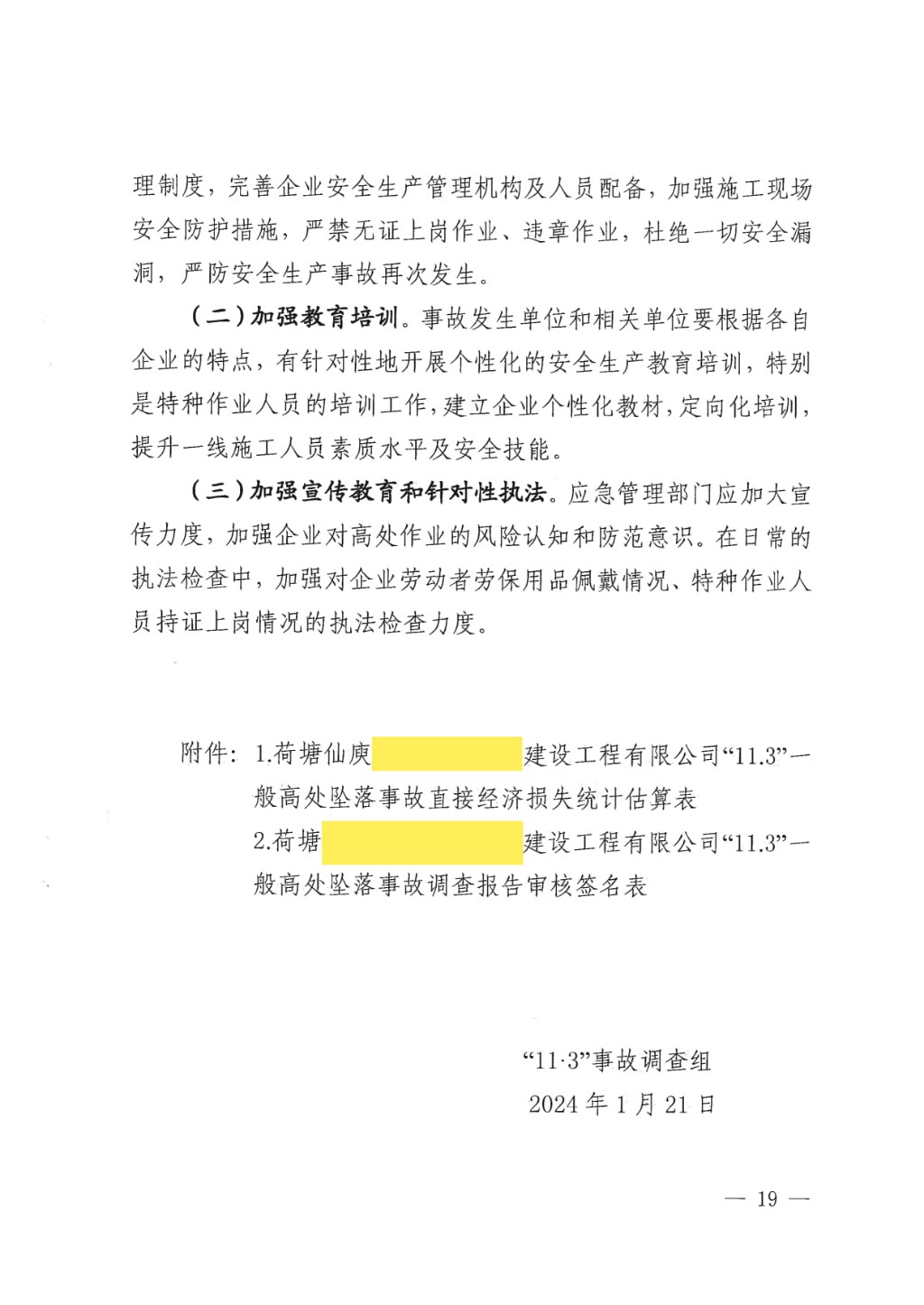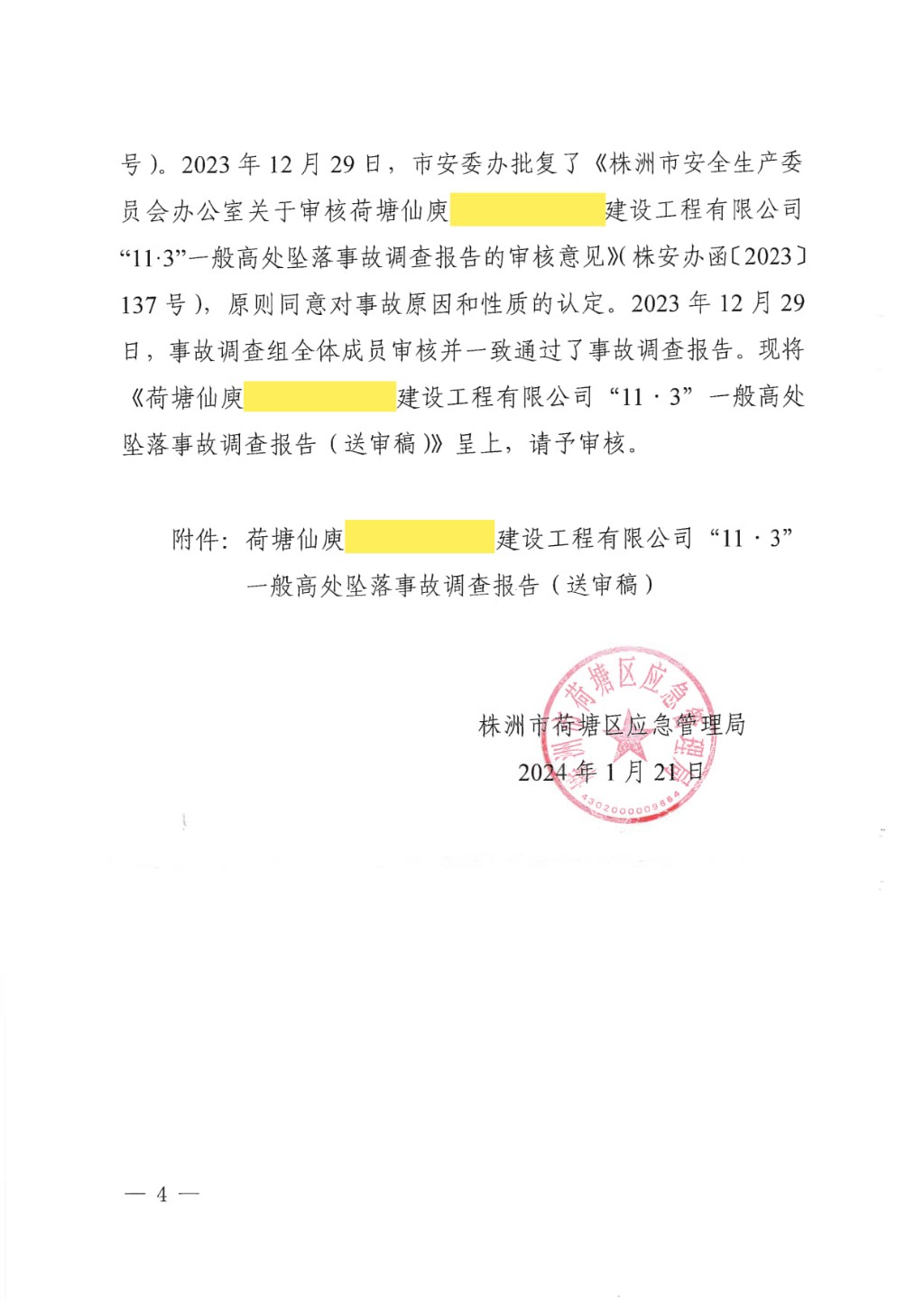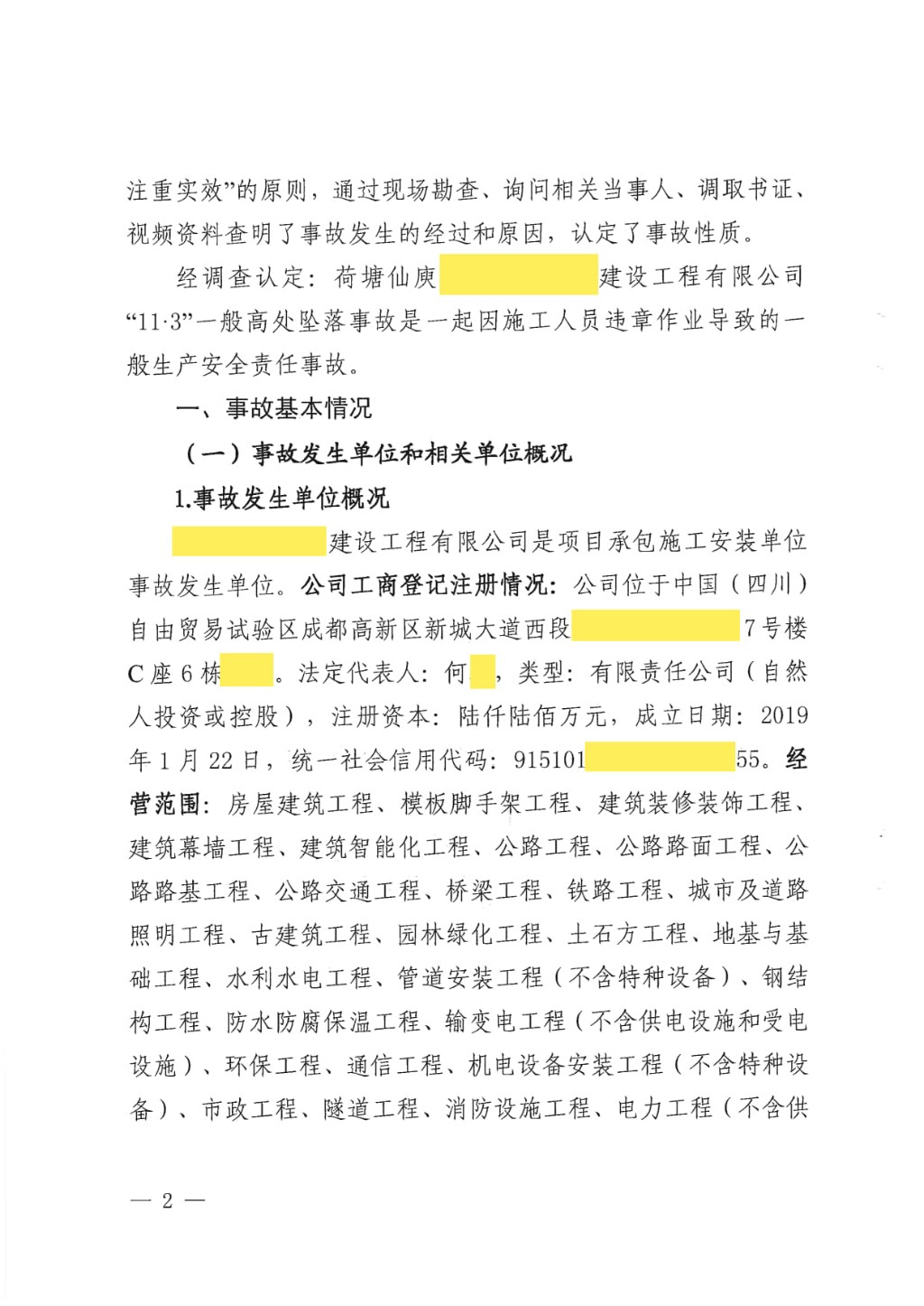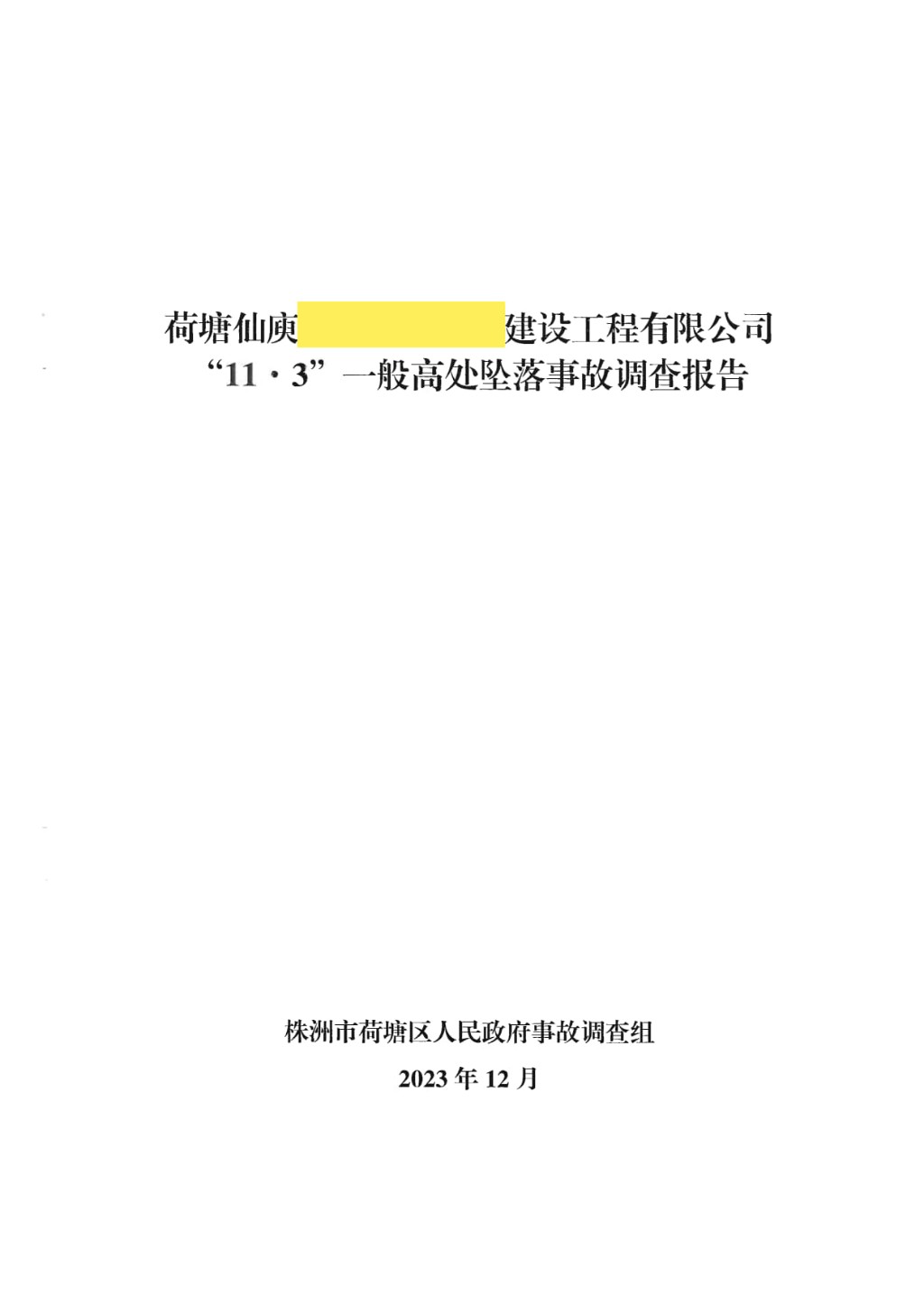 荷塘仙庾四川****建设工程有限公司“11·3”一般高处落事故调查报告