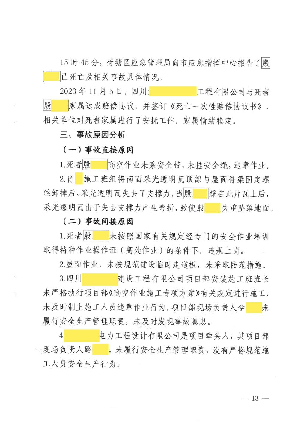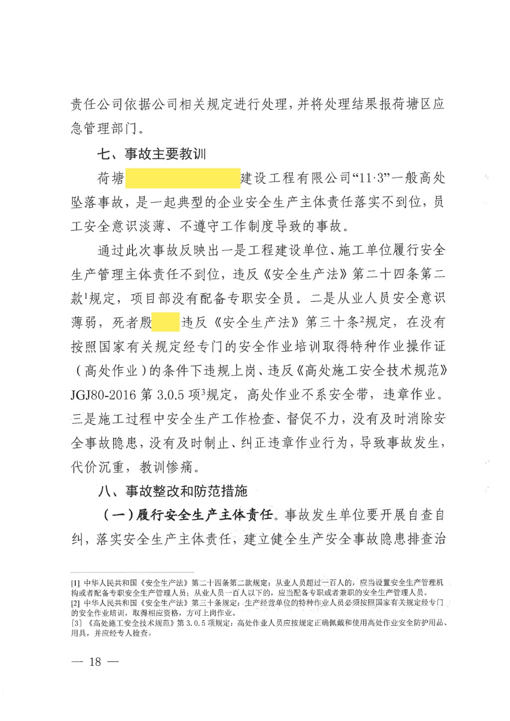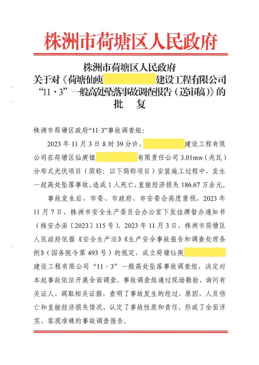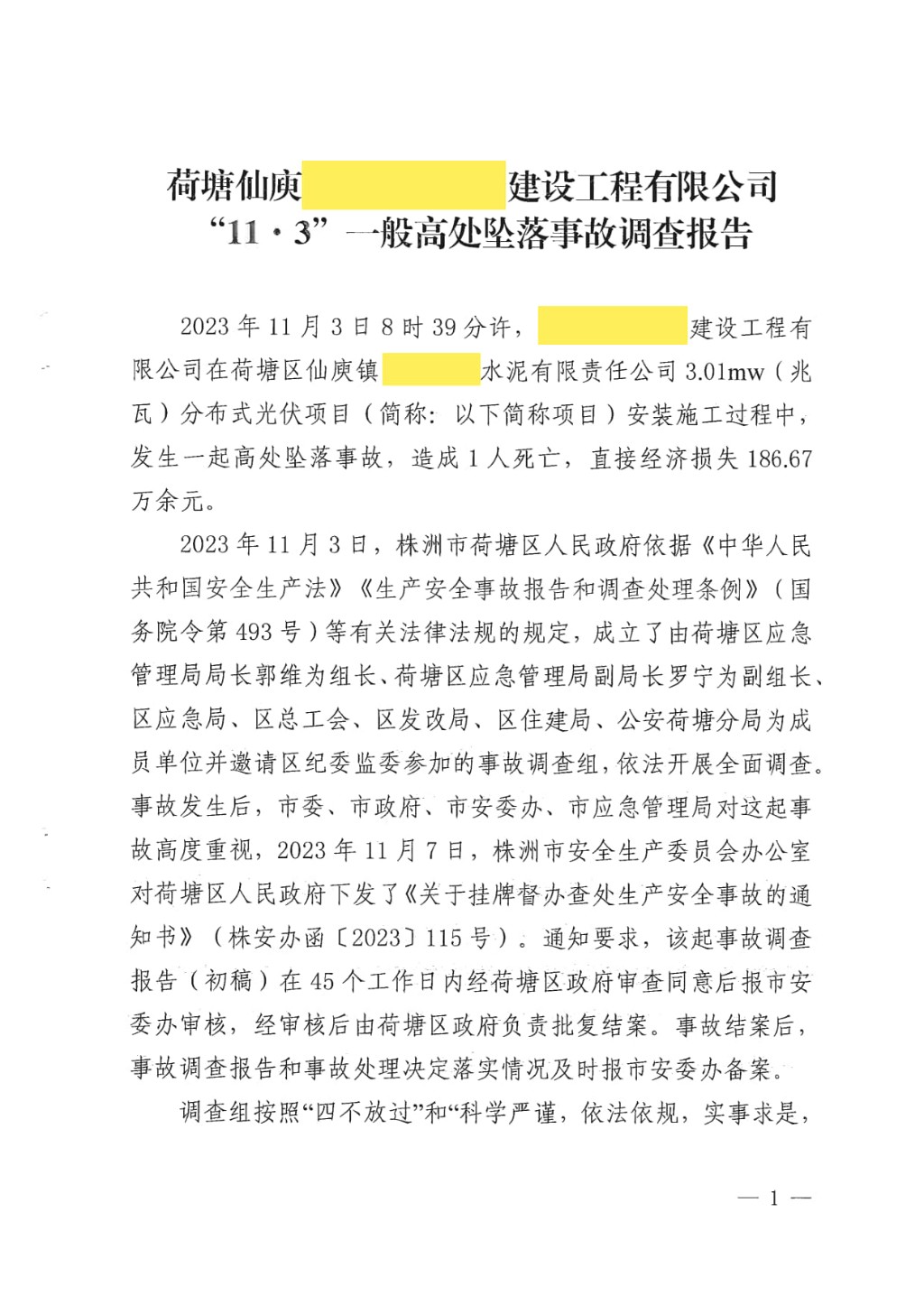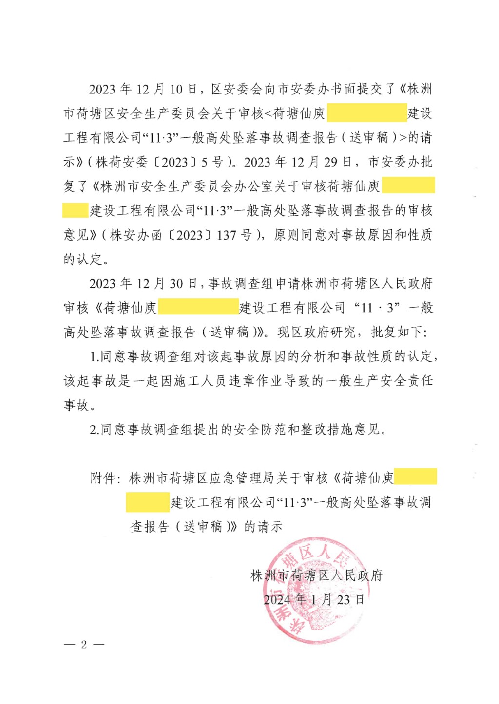 荷塘仙庾四川****建设工程有限公司“11·3”一般高处落事故调查报告