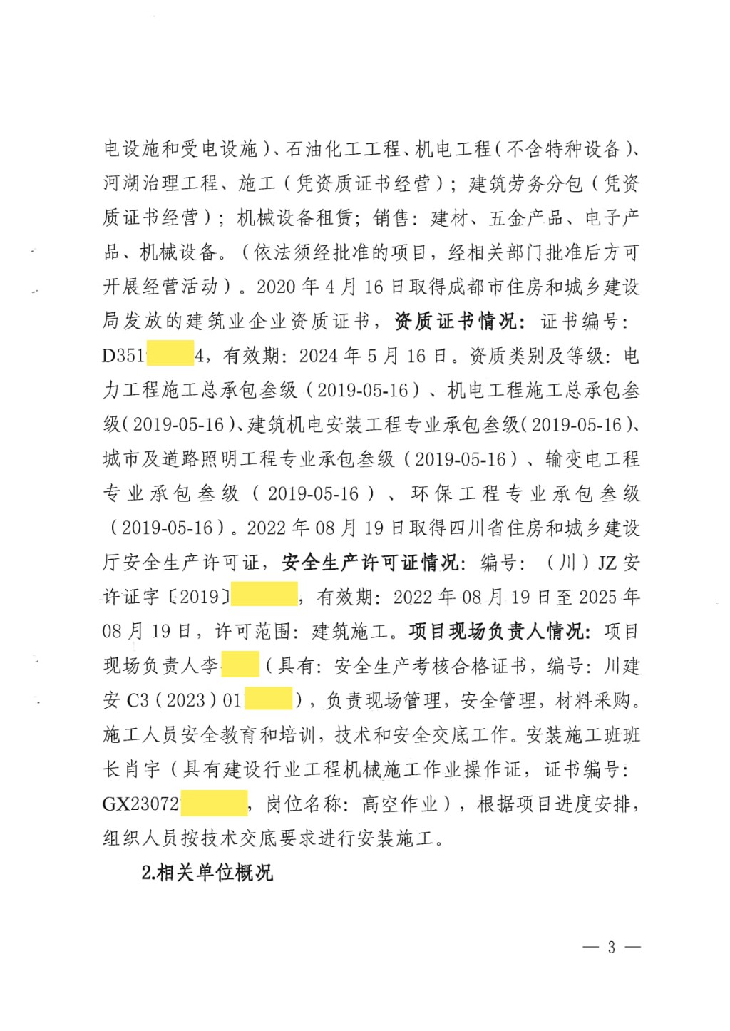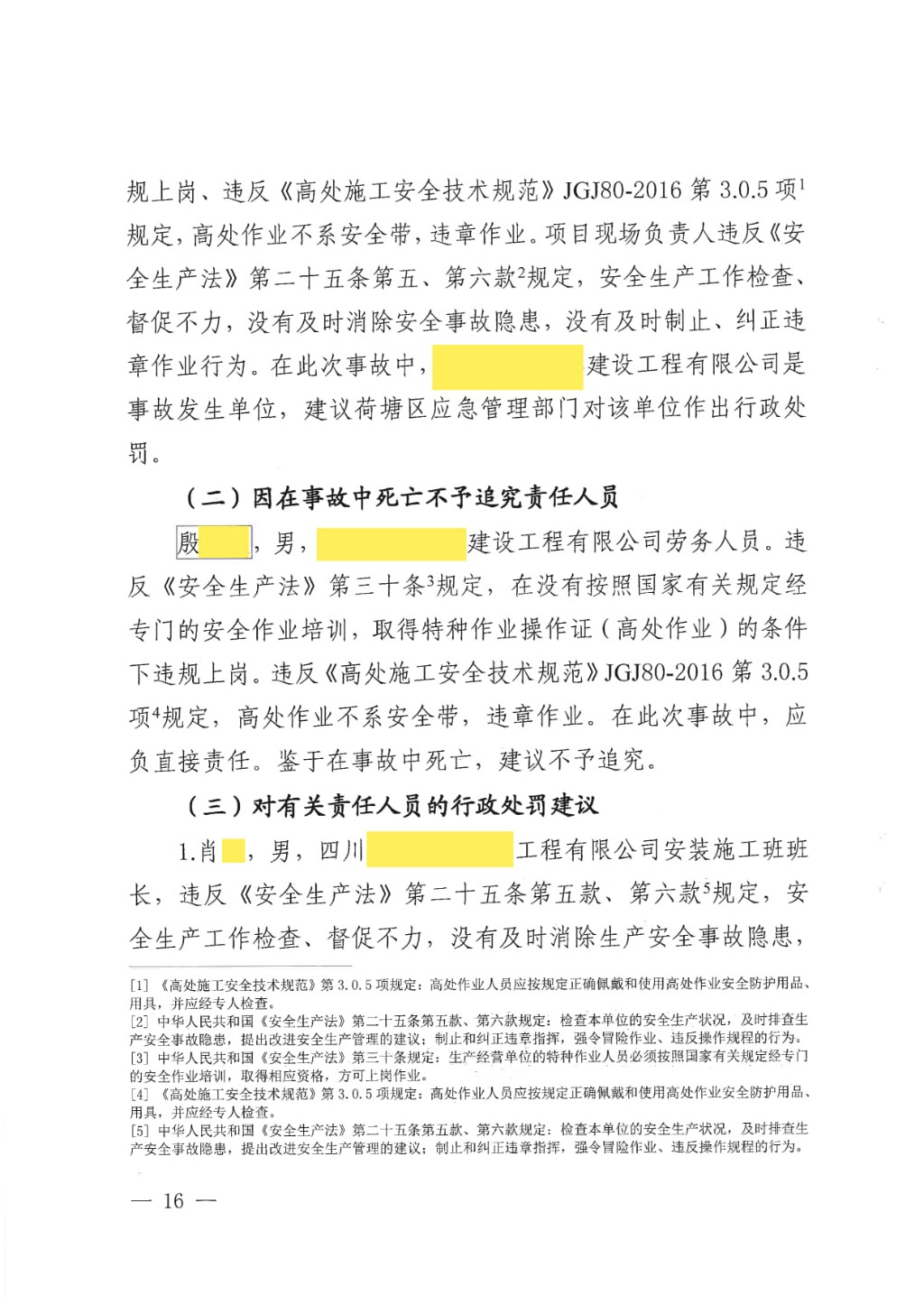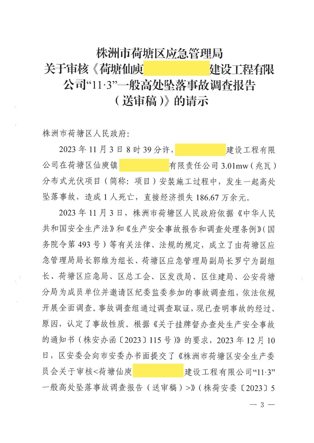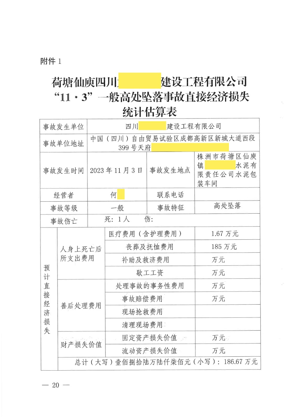 荷塘仙庾四川****建设工程有限公司“11·3”一般高处落事故调查报告