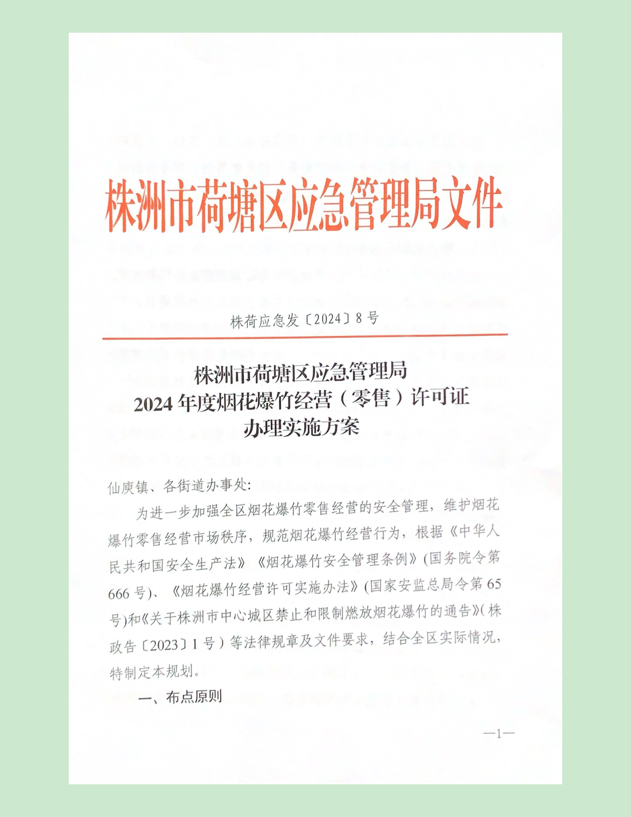株洲市荷塘区应急管理局 2024年度烟花爆竹经营(零售)许可证 办理实施方案