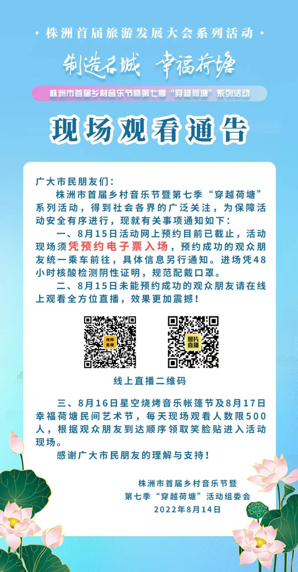 株洲市首届乡村音乐节暨第七季“穿越荷塘”系列活动现场观看通告