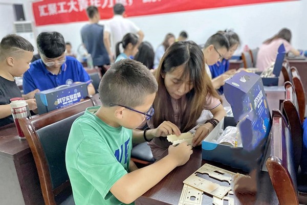 组装太阳能汽车、平衡车、全息投影、直升机、吸尘器等,在大家的配合和努力下,一块块积木变成了“高科技产品”,孩子们用选调生哥哥姐姐们捐赠的科学实验套装,边玩游戏边学科学知识。吴宇凡是一名大二学生,支教期间她还走进小朋友家中进行家访。她说,“以这种方式度过暑假很有意义。”