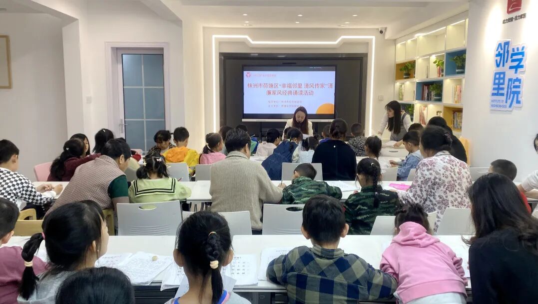 荷塘区桂花街道新桂都“小区学堂”学国学吟诵课堂。