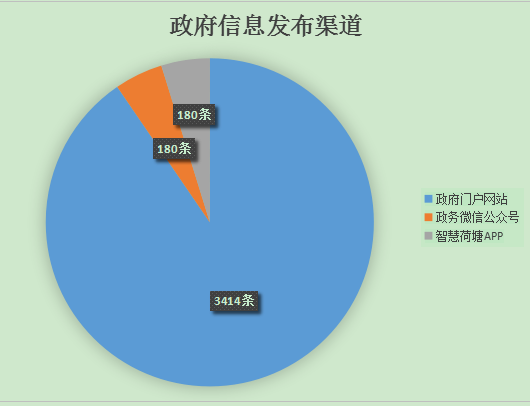 截至2018年12月31日,我区通过政府门户网站主动公开政府信息3414条,主要有政务要闻530条、部门动态1623条,通知公告316条,政府文件及政策解读27条,其他栏目发布918条;通过政务微信主动公开政府信息180条;通过智慧荷塘APP主动公开政府信息180条。