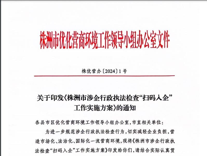 关于印发《株洲市涉企行政执法检查“扫码入企”工作实施方案》的通知