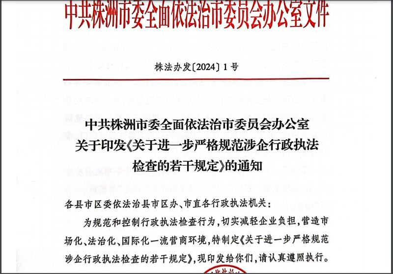 中共株洲市委全面依法治市委员会办公室关于印发《关于进一步严格规范涉企行政执法检查的若干规定》的通知