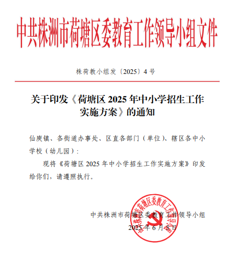 关于印发《荷塘区2025年中小学招生工作实施方案》的通知