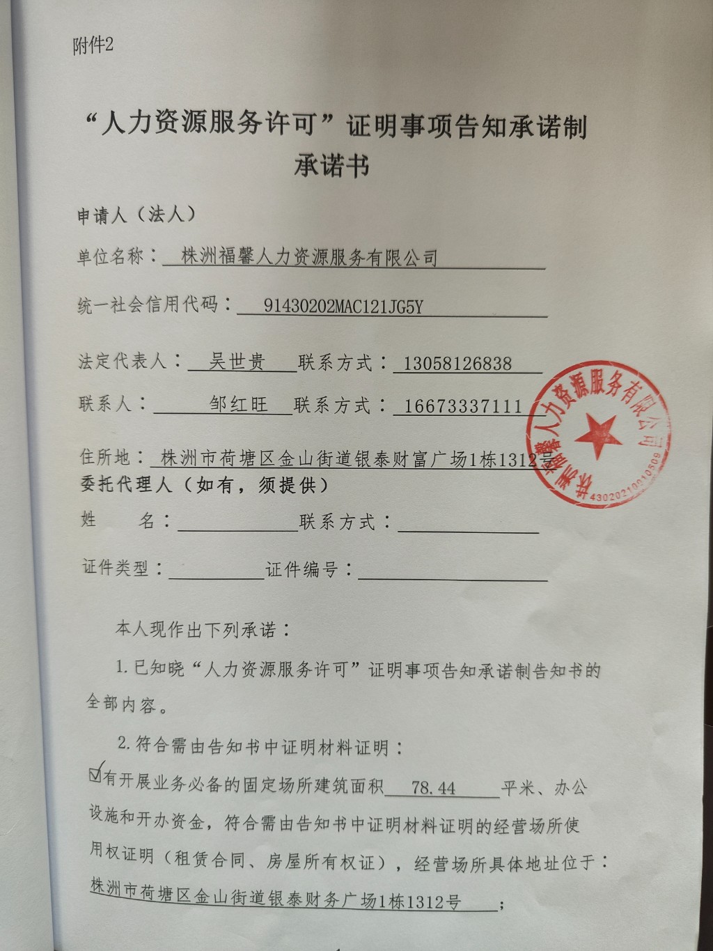 根据湖南省人力资源和社会保障厅《关于推行告知承诺制办理人力资源服务许可的通知》文件精神,现对承诺制办理人力资源服务许可的株洲福馨人力资源服务有限公司提交的《“人力资源服务许可”证明事项告知承诺制承诺书》予以公示,公示时间为30日(2023年2月16日—2023年3月18日)。