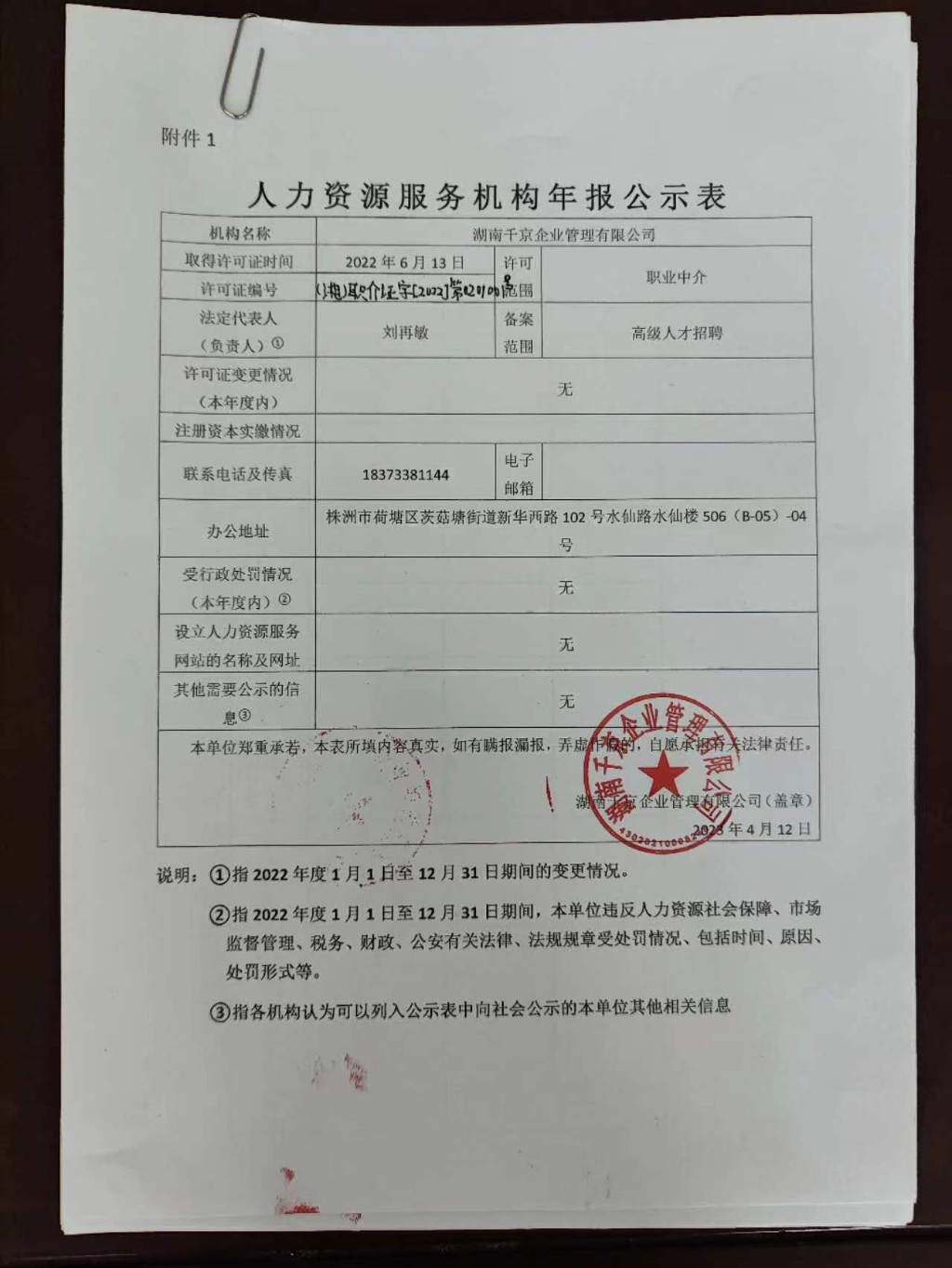 根据湖南省人力资源和社会保障厅《关于做好2022年人力资源服务机构年度报告公示工作的通知》及有关会议精神,现将2022年株洲市荷塘区人力资源服务机构年度报告相关情况进行集中公示,接受社会各界监督。公示期为2023年5月11日至5月20日。