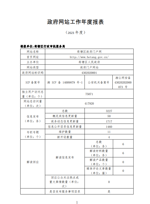 株洲市荷塘区2023年政府网站工作年度报表