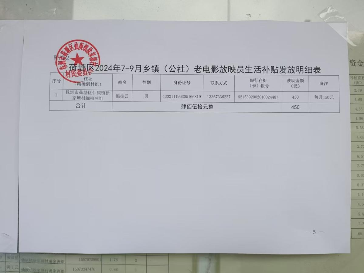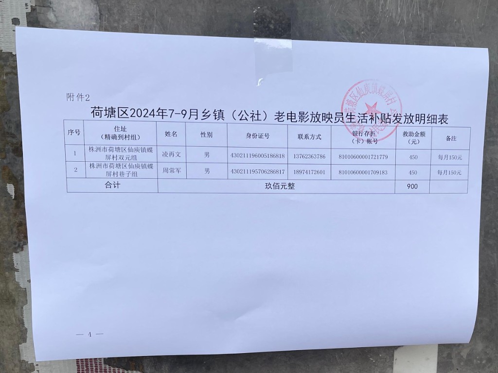 2024年7-9月荷塘区乡镇(公社)老放映员生活困难补贴发放公示