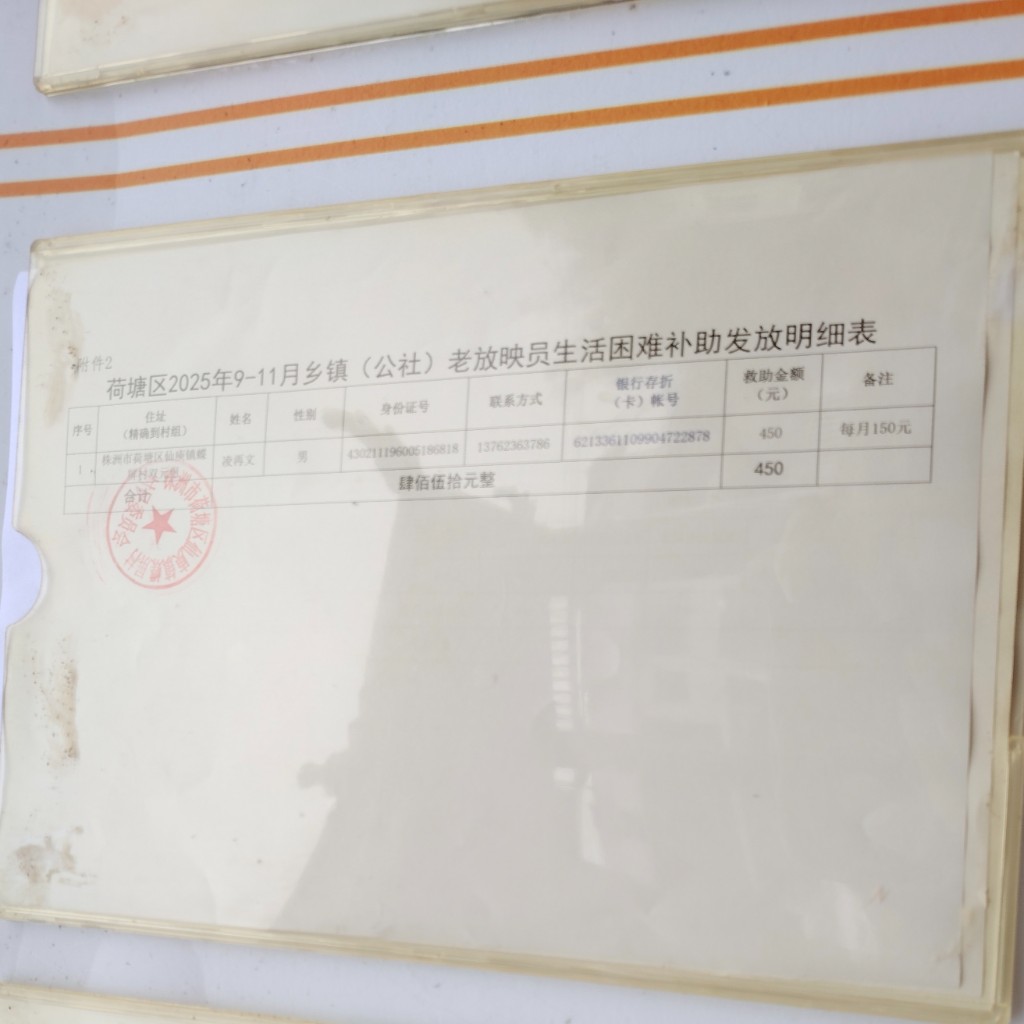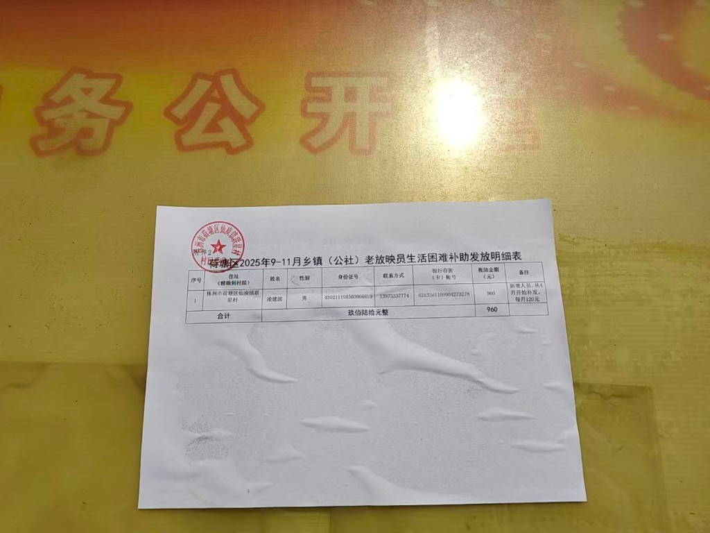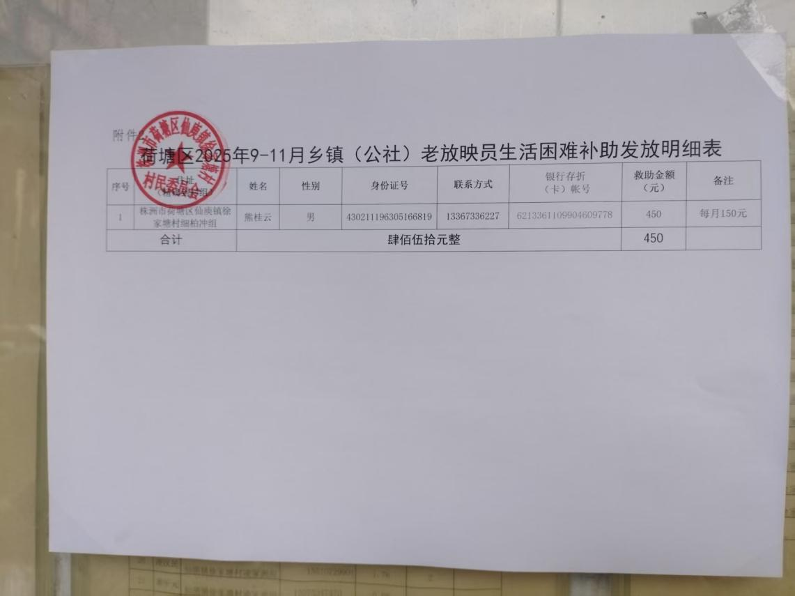 荷塘区2025年9-11月乡镇(公社)老放映员生活困难补助发放公示