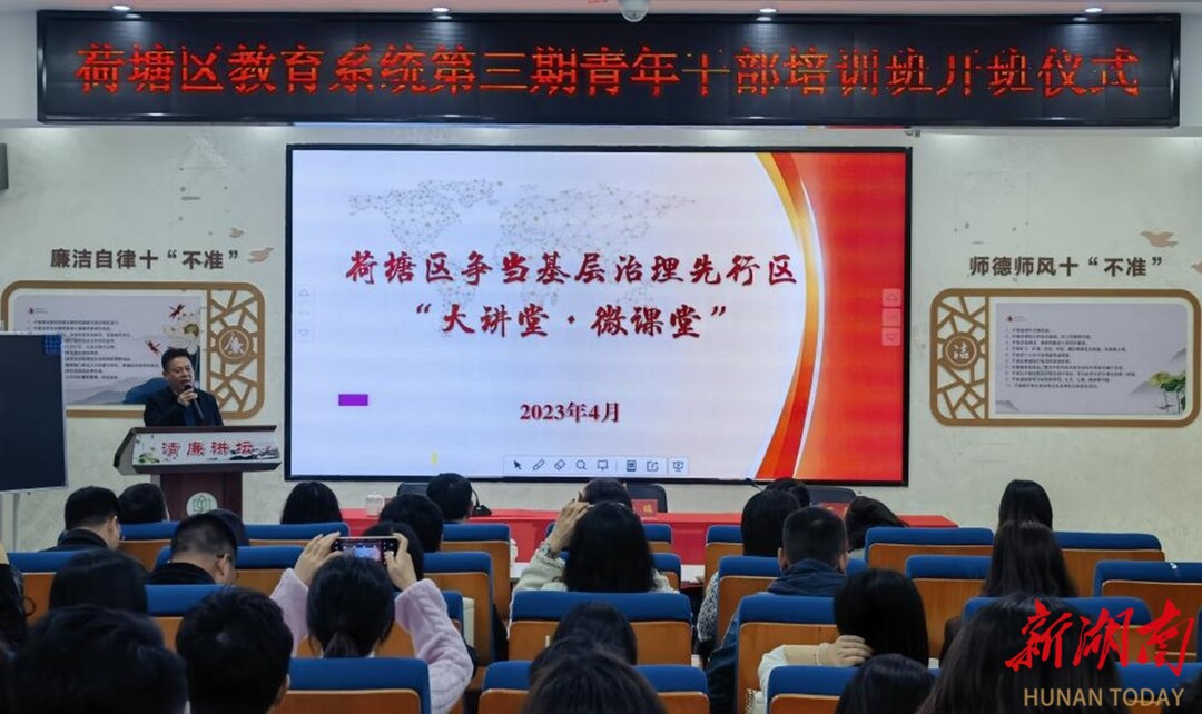 4月4日,荷塘区教育系统第三期青年干部培训班开班仪式在荷塘小学举行。荷塘区委副书记、政法委书记余鹏,荷塘区人民政府副区长罗曼出席。仪式由荷塘区教育局党委书记、局长周波主持。