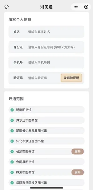 “湘阅通”是由湖南省图书馆学会、湖南图书馆联合全省县级以上公共图书馆共同实施的智慧服务工程,已对接省政务服务平台和省统一身份认证平台,用户只需在小程序内输入身份证信息进行注册,选择需要开通电子证的图书馆,并按照指引完成认证,即可在已开通服务的图书馆实现“一码通行、一码通借”,目前已开通服务的公共图书馆有湖南图书馆、长沙图书馆、株洲市图书馆、湘潭市图书馆等40余家,接下来还将接入更多的省内公共图书馆。