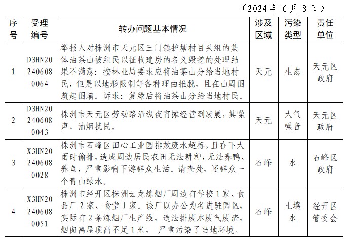 6月9日督察组交办第31批信访件144件,其中我市4件。督察组累计交办3778(分解后3800件),株洲192件,其中重点件20件,重复投诉件25件,在全省各市州中信访件数量排名第9。我市按区域分布为:醴陵52件,攸县29件,天元29件,芦淞19件,荷塘14件,石峰13件,经开区12件,茶陵7件,炎陵5件,渌口4件,市住建局4件,市交通运输局2件,市城管局1件。