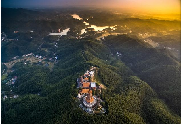 龙山寺所处之地就谓之为龙山,为罗霄山脉一支。地形从东南向西北缓斜,中部为一凹地,范围内东南北三面山丘环绕,北部较为平坦。从远处看,龙山之形状就像一条传说中的龙:龙头昂起,龙体粗壮,龙身绵长,龙尾细腻。整个形状起伏有致,错落大方。