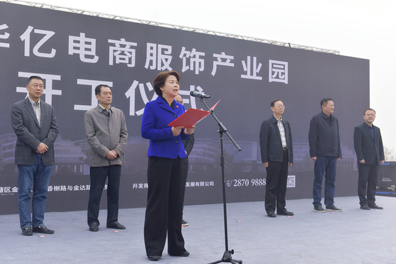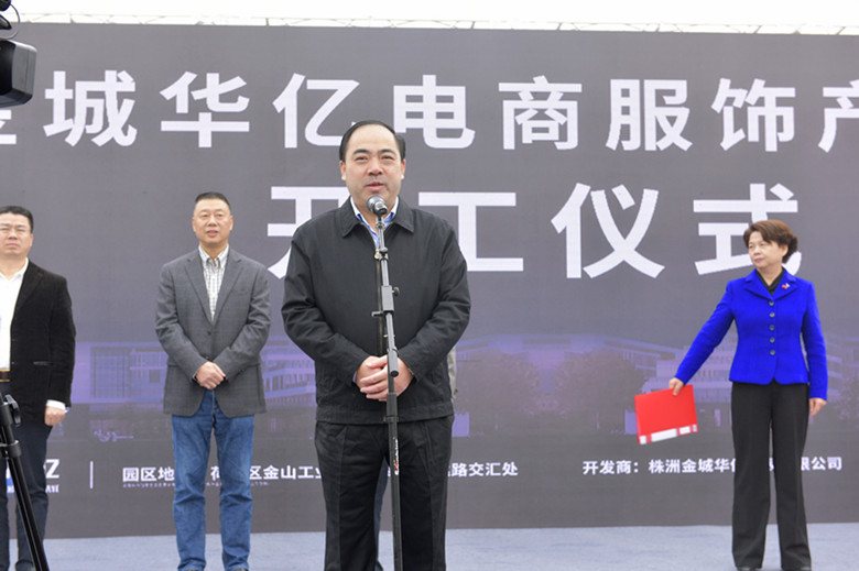 市委常委、政法委书记杨玉芳代表株洲市委、市政府向项目开工表示热烈的祝贺!她指出,项目兴、则经济兴;产业强、则株洲强。株洲经济要实现高质量发展,必须有一批与时代发展特征、发展需求相匹配的高质量产业项目。服饰产业是株洲5大千亿产业之一,是株洲产业的重要支柱。金城·华亿电商服饰产业园项目作为株洲市服饰产业升级的试点项目和重点项目,对全市服饰产业的智能制造、全产业链发展升级具有重要意义,建设单位要高标准要求、高起点设计、高速度建设、高质量保证,促使项目早日运营投产,为株洲市服饰产业发展升级做出重要贡献。株洲市委、市政府一定会举全市之力,继续做好项目服务工作,帮助协调解决项目建设中的困难和问题,为项目建设、产业发展营造良好的环境
