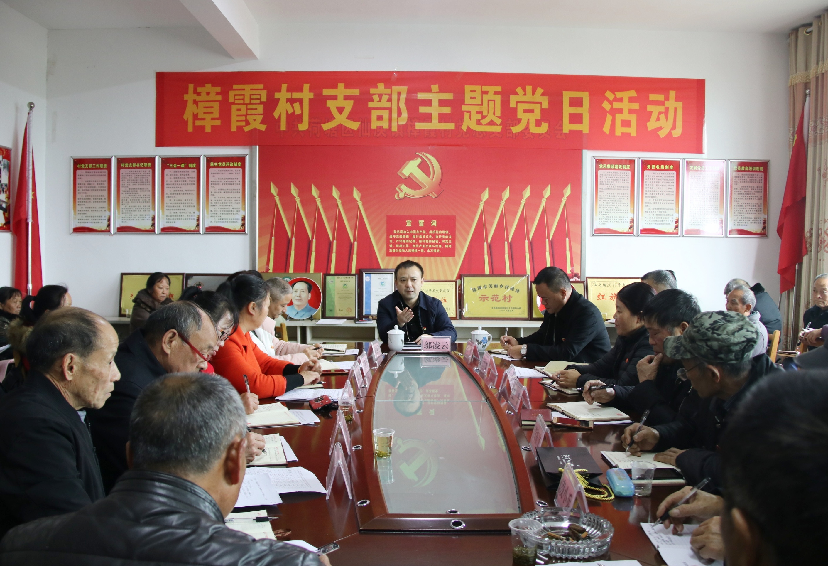 在为党员讲党课前,邬凌云随机到部分村民家中走访,详细了解支村两委运行情况和有关工作意见建议。邬凌云讲述了“红旗渠总设计师”的杨贵实报粮食产量,焦裕禄同志带领兰考人民战风沙、斗内涝、治盐碱的感人故事,要求党员干部实事求是、敢于担当,杜绝形式主义、官僚主义,发挥党员的先锋模范作用,在工作中说实话、务实事、求实效。他强调,理论联系实际、密切联系群众、批评与自我批评是我们党的三大优良作风,也是适应新形势、应对新挑战的重要法宝。在乡村振兴工作的推进中,党员干部就要密切联系群众,以人民群众的需求为出发点,认真调研、了解民意、摸清实情,着力解决樟霞村居民反映的实际问题;要攻坚克难,加大乡村基础设施提质改造力度,推进人居环境整治;要用开放的理念和创新的思维,因地制宜,大胆探索,突出樟霞村特色,通过开放体验式茶油作坊等方式,打造出一条乡村生态旅游产业链。