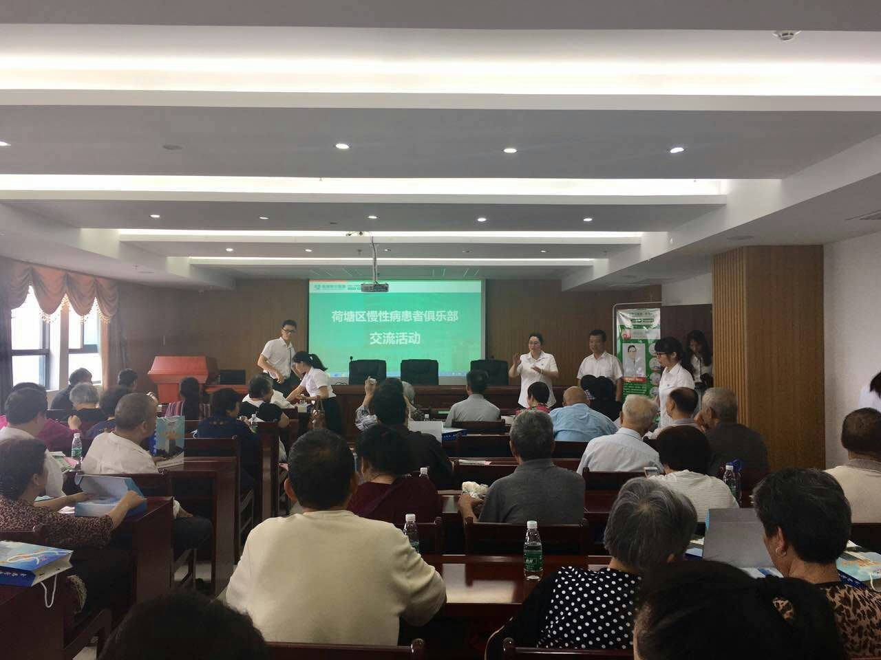 等70余名会员全部体检用完早餐,在简短的开幕式后,新兴医院的胡景铭主任医师开始了健康讲座,讲座题目为《糖尿病知识讲座》。他从糖尿病的相关知识、社区管理的意义,养成健康的生活方式,坚持合理膳食和适量运动控制血糖中的作用等方面进行了详细生动的讲解。活动现场气氛很活跃,成员们均积极参与,大家踊跃主动提出问题,使他们对自己切身相关的知识有了进一步了解,对健康生活方式与行为有了新看法。