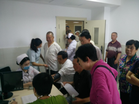 6月2日早上7点钟,荷塘区“慢性病俱乐部”活动就悄悄地拉开了序幕,荷塘区疾控中心、金山街道社区卫生服务中心、晏家湾社区、新兴医院的工作人员为每一位会员进行免费的全面的健康体检及风险评估,包括测量血压、血糖、糖化血红蛋白、血常规、尿常规、B超、心电图、肝肾功能等项目,并贴心的为每位会员准备了营养丰盛的早餐,体检结束之后,区疾控中心向每一名会员发放了会员手册和健康工具礼品。70余名慢性病会员参加了此次活动,现场一派热闹景象。