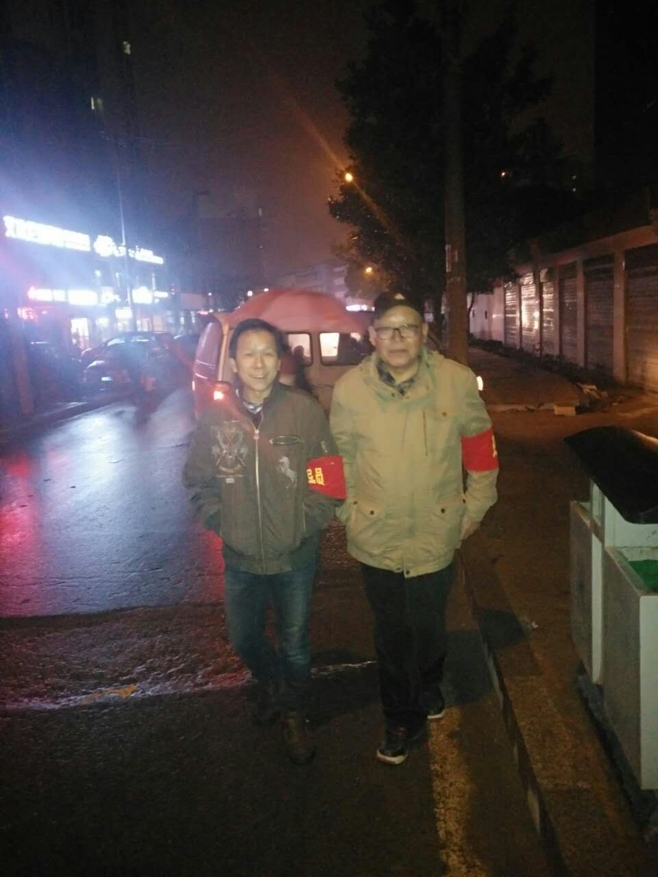 2013年由于辖区内无人管理小区多、流动人口多,辖区发案率高,社区党委组建党员义务巡逻队,不论炎炎夏日,还是刮风下雨、冰天雪地,义务巡逻的党员们手戴红袖套,巡查在大街小巷,他们中有年过花甲、身患疾病的老党员、有年轻充满活力的新党员,“作为一名共产党员,退休了,能为社区的平安做的实事,我感到很欣慰...”64岁的老党员胡庚平感慨地说.