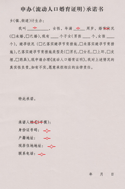 非本市城区范围内户籍,且网上协查不通过的,需提供《流动人口婚育证明》承诺书,收原件;