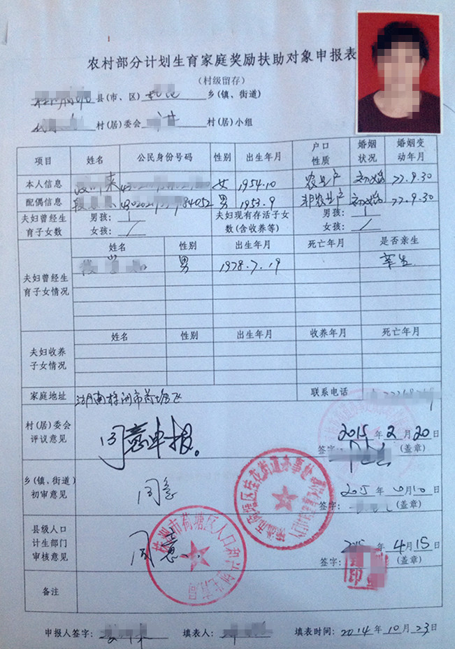申办农村部分计划生育家庭奖励扶助