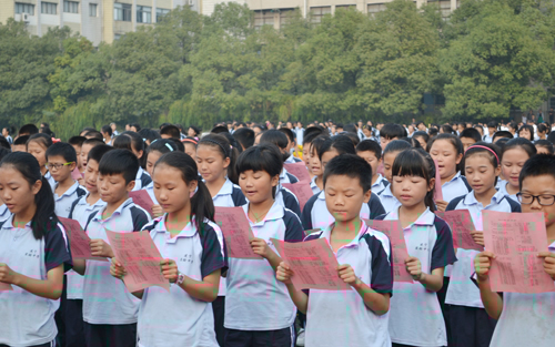 活动旨在大力弘扬社会主义核心价值观,进一步提高广大青少年学生的传统道德素养,推动未成年人思想道德建设深入开展。现场,上千学生先后表演了《岳阳楼记》、《祖国啊,我亲爱的祖国》、《少年中国说》等朗诵节目。据悉,10月20日启动式后还开展了“传统经典诗文书画展”现场观摩签名寄语活动、诵读比赛和经典诗文讲座。