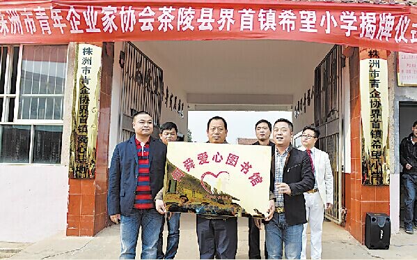 11月6日,由共青团株洲市委、株洲市青年联合会、株洲市青年企业家协会捐助改造的界首镇中心小学(市青企协界首镇希望小学)竣工,株洲市团市委、株洲市青联、青企协向学校授予了“爱心基地”牌匾,这也是市青联、青企协定点援建的第六所“爱心基地”学校。